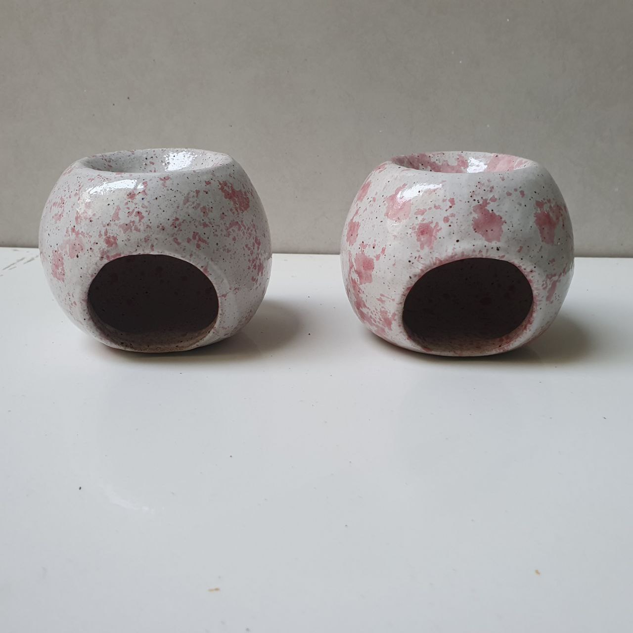 Dois difusores de essências para ambiente em cerâmica artesanal de alta temperatura. Basta pingar algumas gotinhas de óleo essencial na parte superior, acender a vela e aproveitar os benefícios da aromaterapia. De preferência, escolha um óleo que atenda as suas necessidades pessoais.