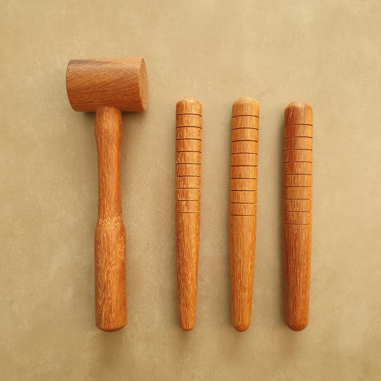 Massageadores artesanais para terapias corporais e equilíbrio de pontos vitais. Ferramentas para Tok Sen, Shiatsu, New Seitai, Liberação Miofascial, Mubun Dashin, Moxabustão, Do-in, Kanren Bui, etc.